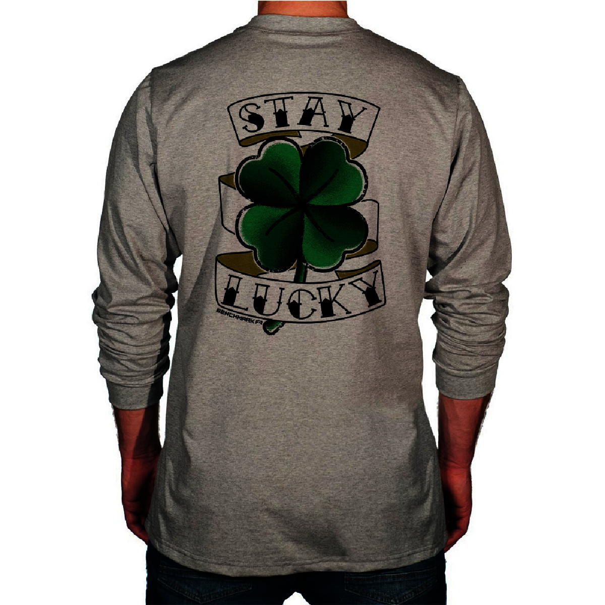 - Benchmark FR Long Sleeve T-Shirt with Stay Lucky Graphic front pocket is lightweight moisture wicking and comfortable to wear. The fit is generous with large shoulder openings a banded collar and rib cuffs. The 100% arc and flame resistant cotton is safe to wear against your skin soft and durable. Multihazard protection including CAT 2 arc flash protection and certified to NFPA 2112 for protection against flash fires. Made in the USA each shirt is individually serialized for traceability.
